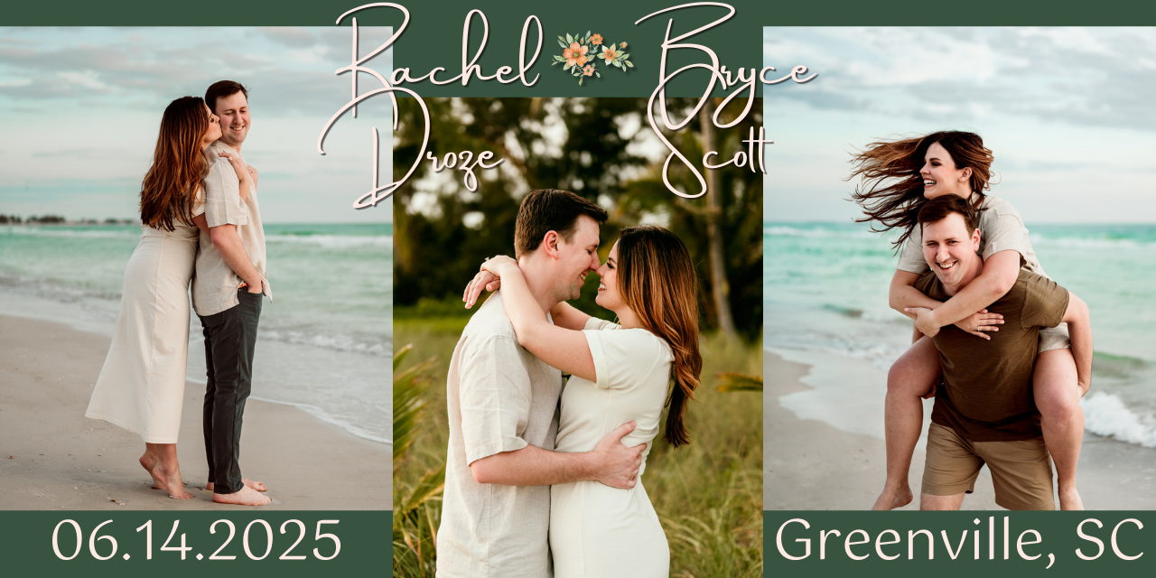 We're delighted to have family and friends from near and far coming to our wedding. To help you find accommodations, we have reserved a block of hotel rooms at The Westin Poinsett (a Marriott property) for two nights from June 13–June 15, 2025.